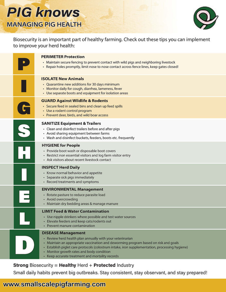 Dos and Don'ts on Feeding Pigs How Much Do Pigs Eat? Farrowing Checklist Fencing Your Pigs African Swine Fever Importance of Biosecurity Food Safety